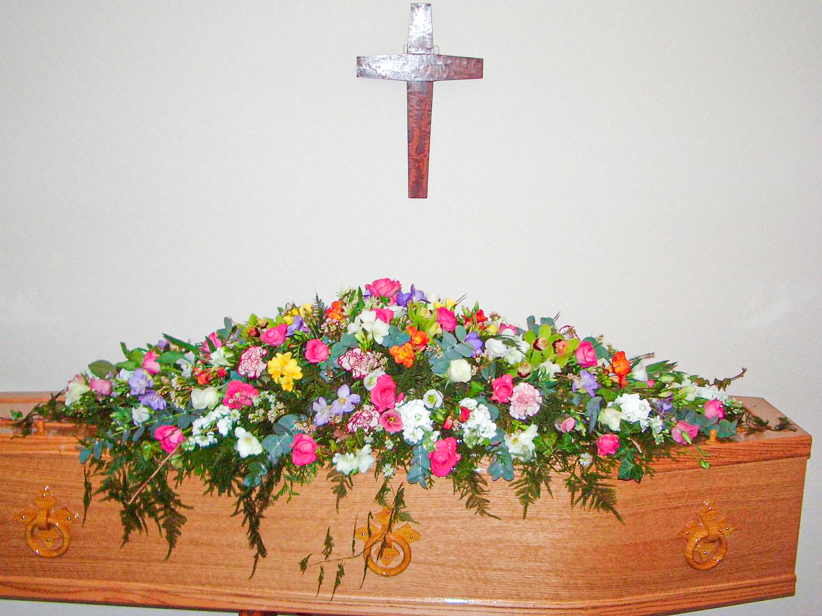 Mixed-Brightly-Coloured-Loose-Flowing-Arrangement Published 27th May 2020 at 1600 × 1200 in Coffin Arrangements 03 Mixed Coloured Loose Flowing Mixed Brightly Coloured Loose Flowing Coffin Arrangement, Florist, Radcliffe