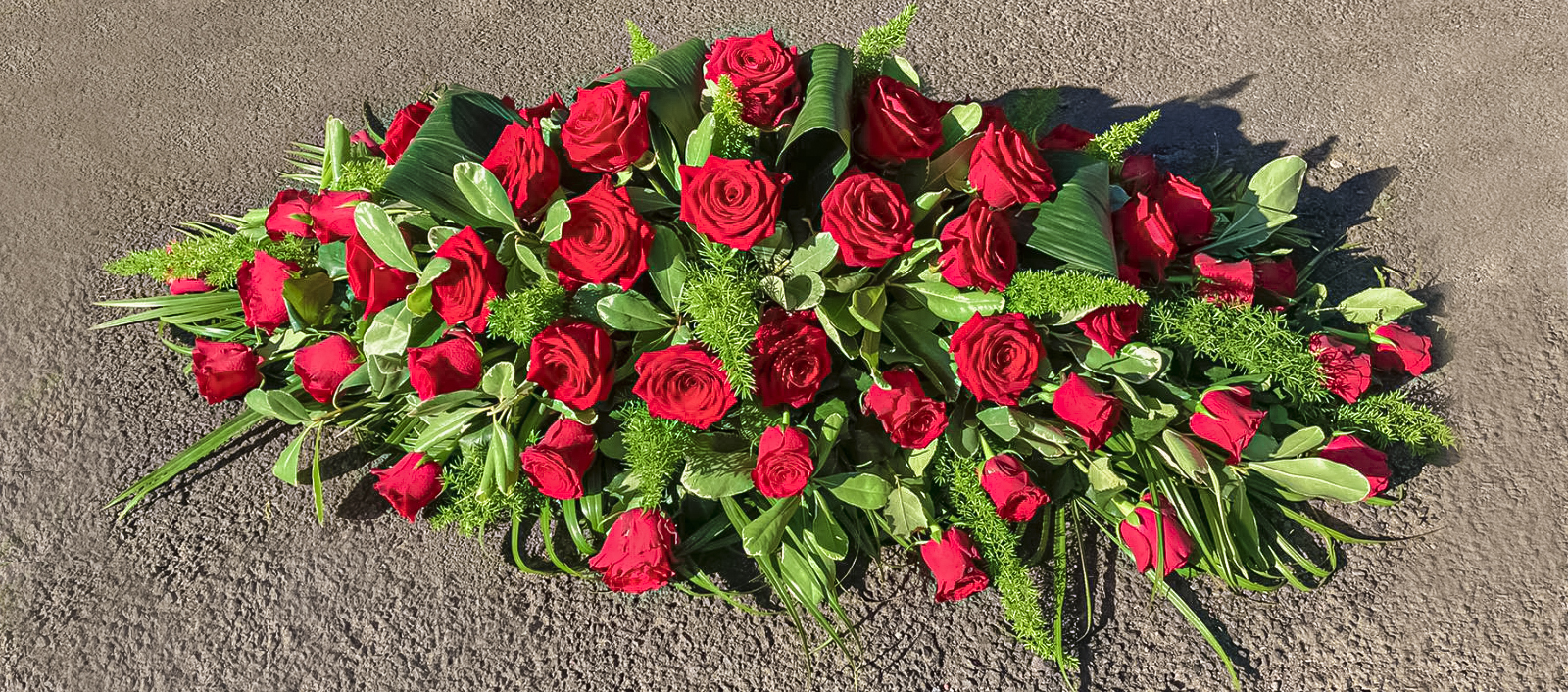 Coffin Arrangement in Red Roses And Mixed Foliage, Florist, Radcliffe Published 29th May 2020 at 1600 × 706 in Coffin Arrangements 16 Red Roses | Mixed Foliage Coffin Arrangement in Red Roses And Mixed Foliage, Florist, Radcliffe