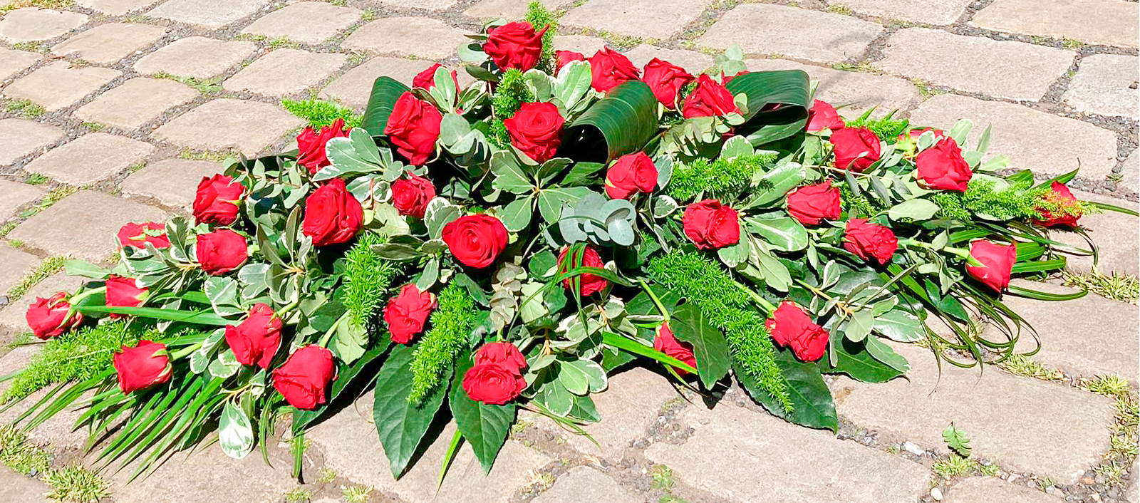 Coffin Arrangement in Red Roses And Mixed Foliage, Florist, Radcliffe Published 27th May 2020 at 1600 × 706 in Coffin Arrangements 16 Red Roses | Mixed Foliage Coffin Arrangement in Red Roses And Mixed Foliage, Florist, Radcliffe