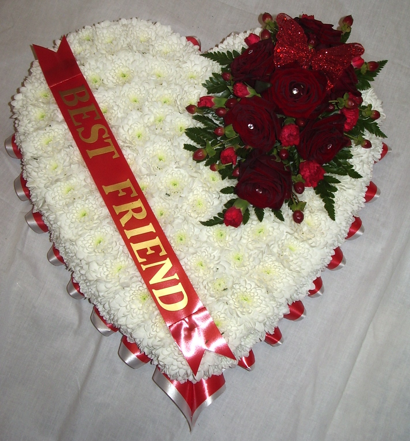 Blocked Heart Red and White, Funeral, Radcliffe Florist, Flowers